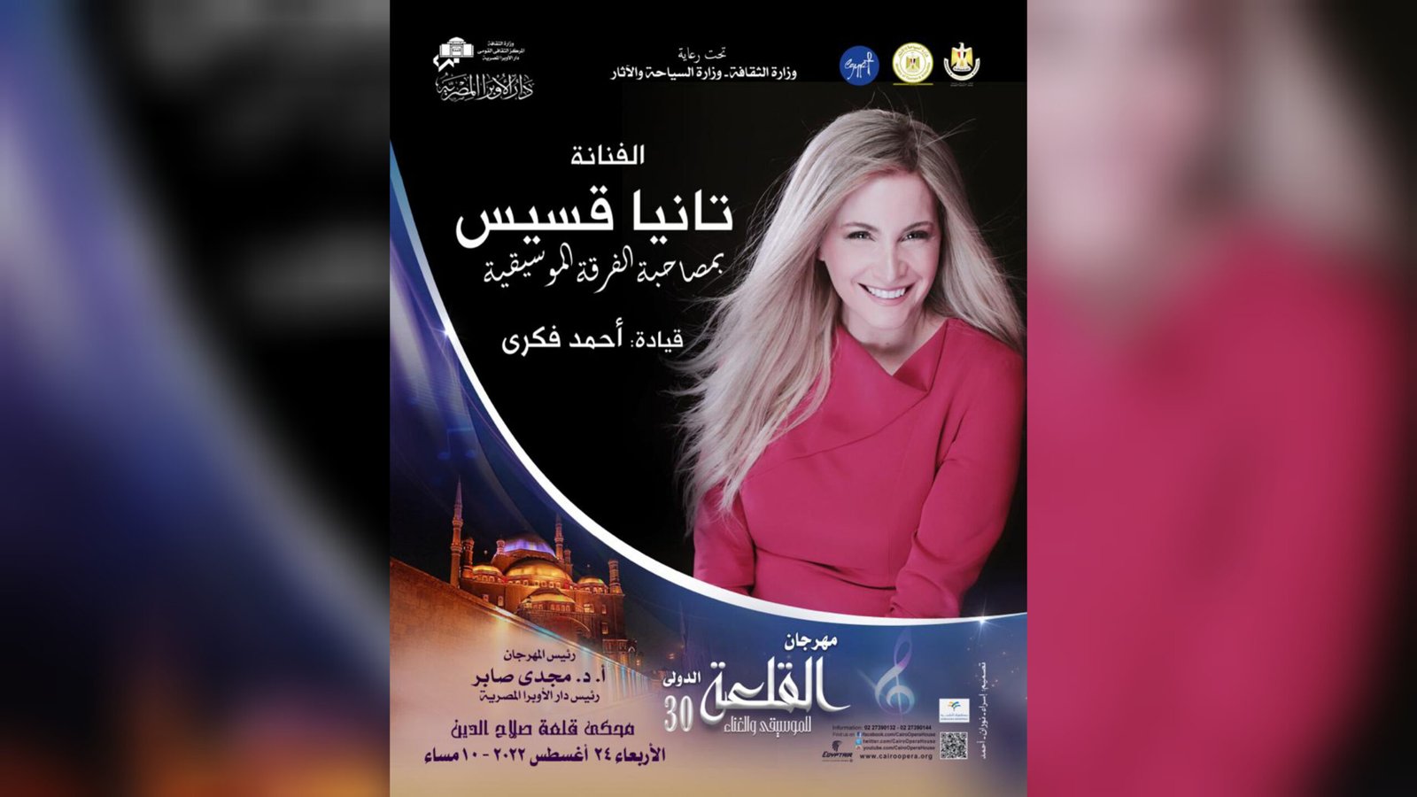 وتحيى تانيا الحفل في مهرجان محكى القلعة يوم الأربعاء الموافق 24 أغسطس الجاري.